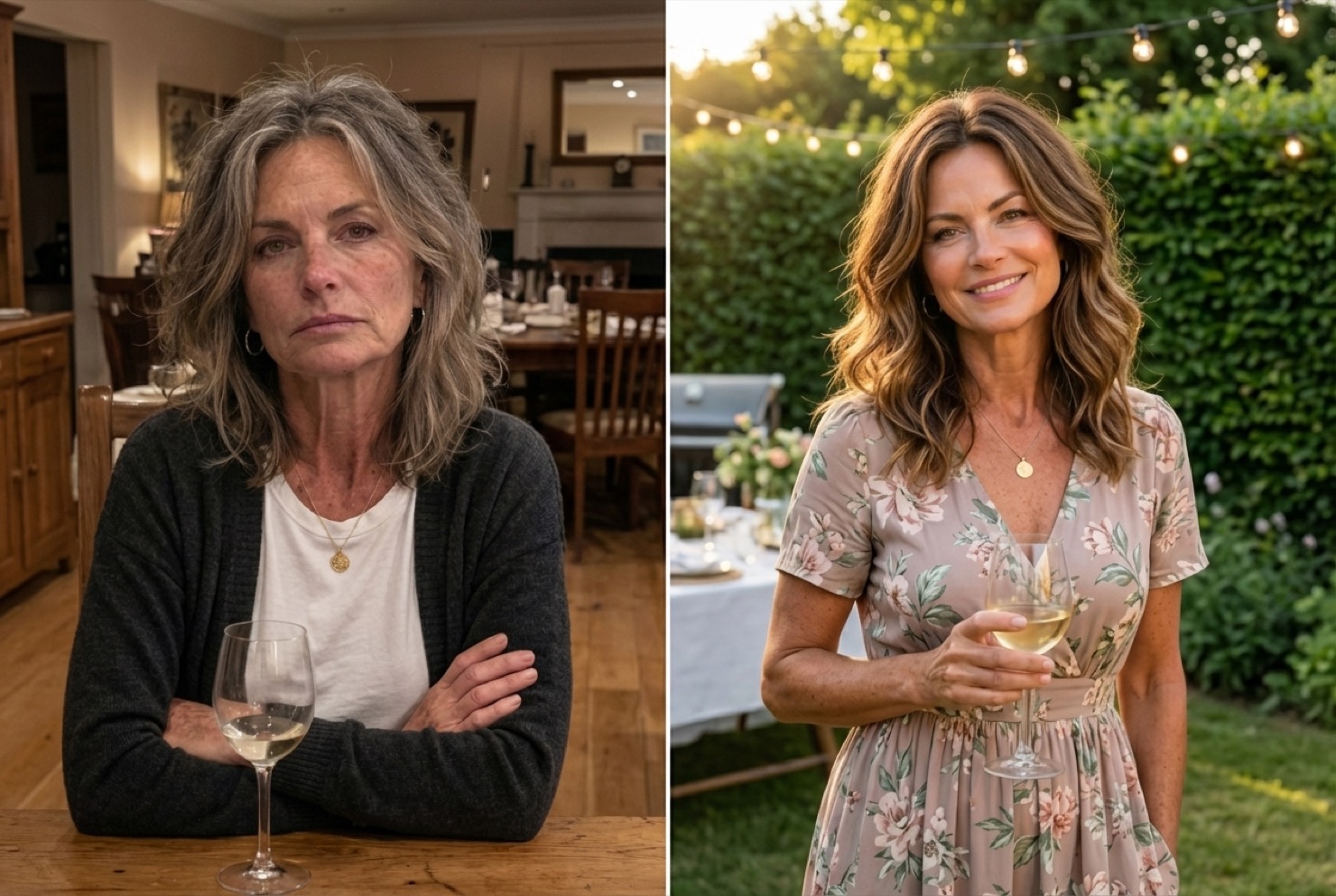 Left: March. Right: May. Same woman. No filter.